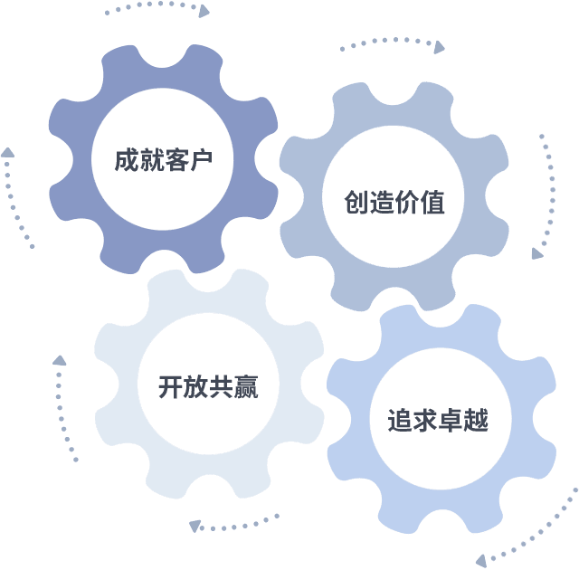 成就客户是一切决策的出发点,,,,创造价值是衡量所有工作的标准,,,追求卓越是人生就是博做事做人的态度,,,,开放共赢是人生就是博的格局也是最终的结果。。。。价值观的齿轮环环相扣,,推动着组织里的每个人不断向前。。